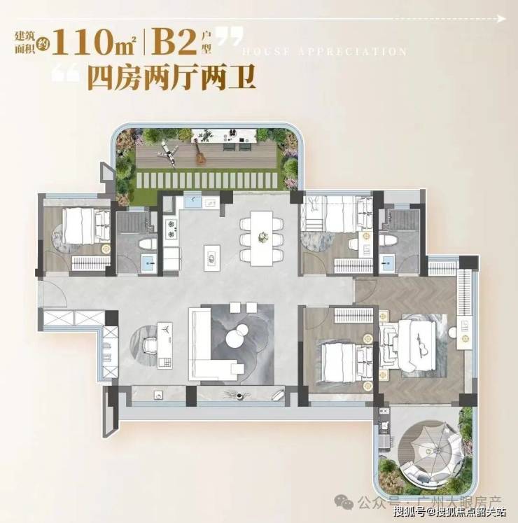 招商的拍地条件注定了,它会成为广州第一个拥有40%全赠送空中花园+25%阳台占比的新盘,使用率将会接近150%。