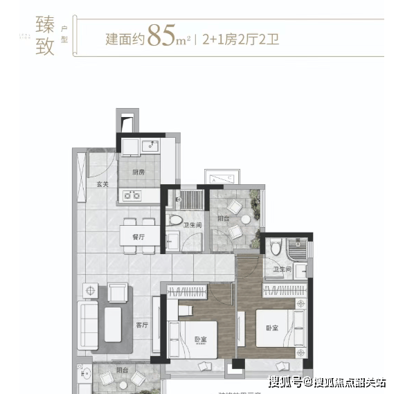 远洋北控天成主打85㎡三房、95㎡三房及109㎡四房,主力集中在5座。最大亮点在于高达95%的实用率——在普遍80%-85%使用率的佛山新房市场中,堪称“空间魔术师”。以85㎡为例,做到南向三房两卫+U型厨房+大阳台,得房率碾压同级竞品。95㎡户型更实现南北通透,主卧带飘窗,公区动线流畅;109㎡则配备双卫+LDK一体化,适合二胎或三代同堂。所有户型均采用高窗地比设计,采光优秀,且规避了暗厨暗卫。值得一提的是,项目未设“工抵房”或“奇葩户型”,产品力统一性强。结合单价约1.1-1.2万/㎡(85㎡总价约95万起),性价比凸显。对于预算有限但追求空间效率的刚需,这套产品组合拳打得相当精准。