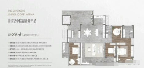 205平方米户型:豪华大气,适合大家庭或追求高品质生活的客户。该户型配备大面积阳台和空中庭院,提供无与伦比的居住体验。