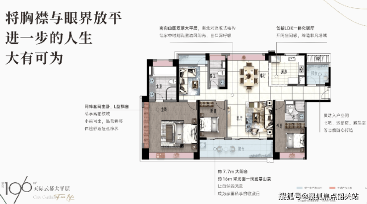 奢华大平层196㎡3+2房3卫:四开间朝南,采光充足,南北通透,空气对流健康呼吸。