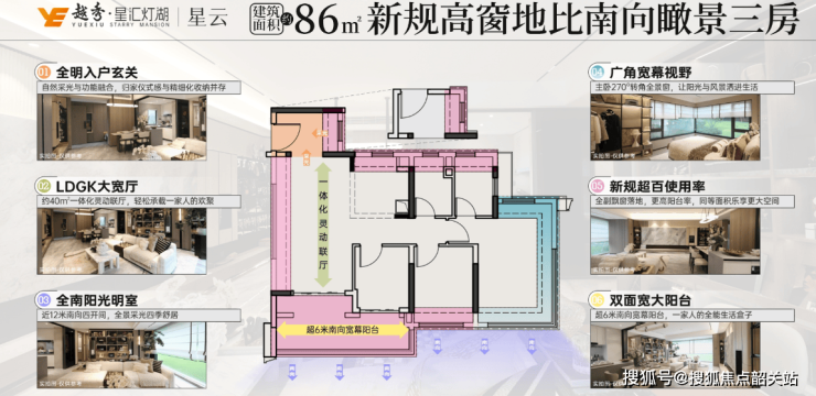 云舒丨建面约86㎡三房两厅两卫:南北通透,户户朝阳,阳光与风景平权。LDGK一体超宽开间设计,让家庭成员能够更好地互动交流。