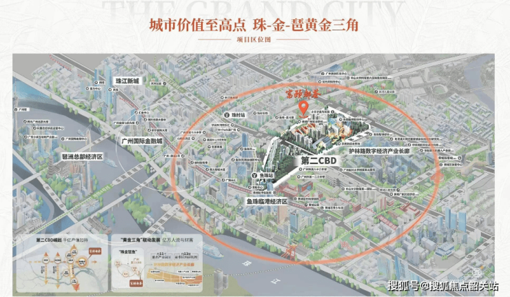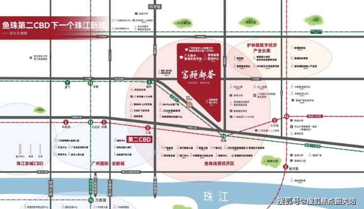 项目地处“珠江-金融城-琶洲-鱼珠”黄金8公里带,紧邻广州第二CBD。周边有护林路高新产业带,未来将汇聚大量高科技企业和人才。虽然距离最近的地铁站如5号线鱼珠站和13号线二期珠村站均有一定距离(约2.4-2.7公里),但通过电动车或公交接驳可以有效解决这一问题。自驾方面,周边道路网络发达,包括茅岗路、广园快速和中山路等,能够快速到达珠江新城及其他重要地段。