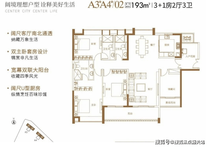 目前在售的建面约139㎡四室户型采用餐客通厅设计,搭配180°环幕瞰景阳台,每个房间都能享受到不同的美景。而建面约193㎡四室户型,则更注重空间的舒展与通透性,大尺度一体化客餐厅做到了南北对流,加上270°弧形设计的景观阳台,实现了室外景观与室内空间的无缝连接。无论是追求舒适生活还是高端享受,这里都有适合的选择。
