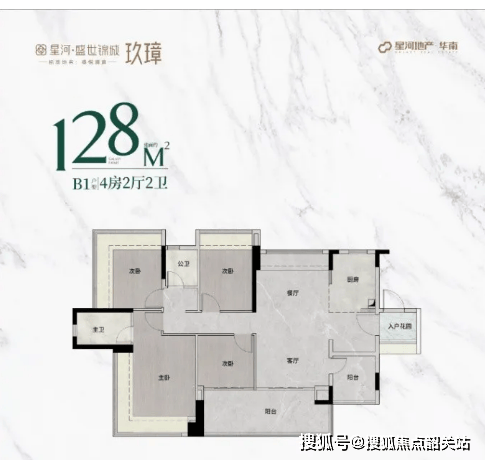 🔥 建面 128㎡四 + 1 空间两厅两卫:
