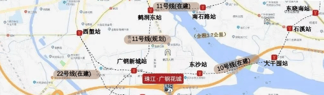 珠江广钢花城距离最近的10号线广钢新城站(在建中)仅700米,开通后可实现0换乘直达珠江新城;更有22号线南漖站(在建中)3站直达广州南站。项目周边还有广州地铁11号线预计于2022年年底通车,串联荔湾、海珠、天河、越秀四区。此外,项目毗邻东沙石岗隧道(预计2023年建成),出门即是东新高速、环城高速,构建便捷生活圈。