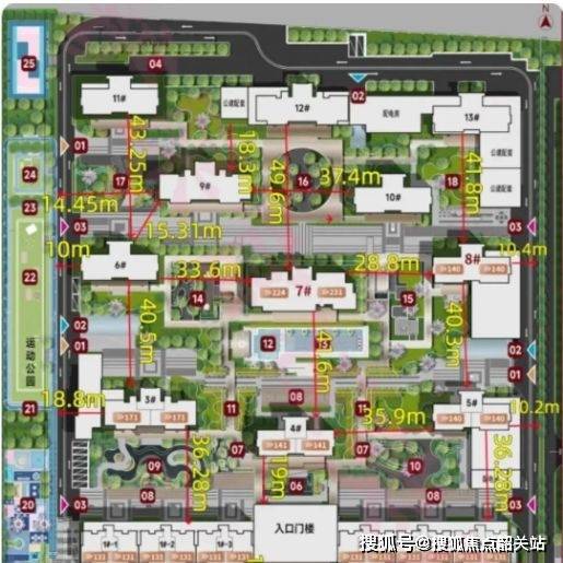项目采用新中式建筑风格,整体立面比例协调,线条规整,色彩沉稳。建筑布局强调秩序与视线通道,通过板式结构减少遮挡,提高通风与采光效率。楼栋高度梯度分布明显,使社区空间更具开放性与层次感,可增强居住舒适度与视野体验。