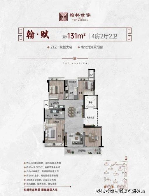 项目主要产品面积段覆盖约131㎡、141㎡、171㎡及220㎡等改善型面积段,全部为纯板式结构,采用两梯两户布局,南北通透、采光尺度清晰,满足家庭型与改善型群体对于空间尺度、舒适度及私密性的需求。