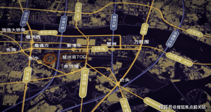 琶洲南TOD拥有广州罕见的多维交通体系。项目地处琶洲核心地段,紧邻阅江西路、琶洲大道及新港东路等主干道,便捷通达珠江新城、天河及海珠各区域。轨道交通方面,12号线赤沙站位于项目地块中部,8号线与18号线磨碟沙站约700米可达,未来还将连通11号线石榴岗站,实现多线换乘,构筑全城无缝通勤圈。