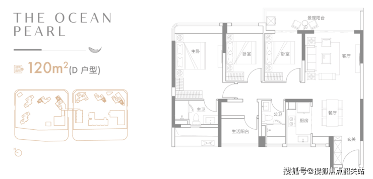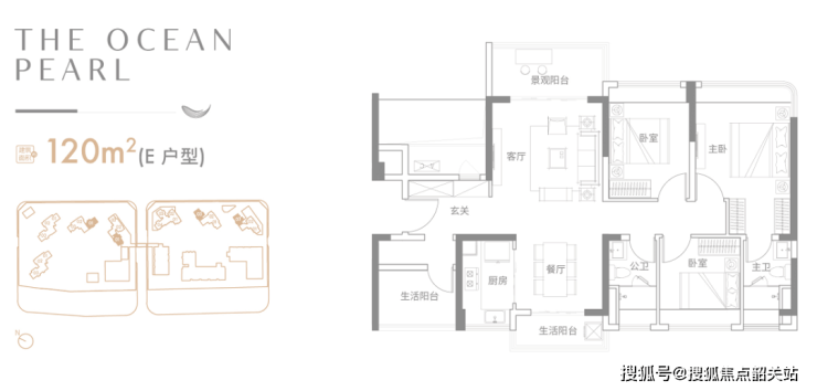 中建玖玥湾主推100-120平方米的东南向瞰海户型,设计上注重空间利用与景观视野。100平方米的B户型和F户型均为三开间望海设计,主卧套间配有270度飘窗,采光通风效果极佳。B户型以横厅设计为主,而F户型则采用竖厅设计,满足不同家庭的居住需求。120平方米的D户型与E户型则在空间感与舒适度上表现更出色,客厅与阳台相连,开阔视野让生活更加惬意。