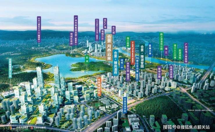 合景泰富·月养云来位于广州增城区荔湖新城核心,坐落于湖心岛上,拥有稀缺的湖景资源。