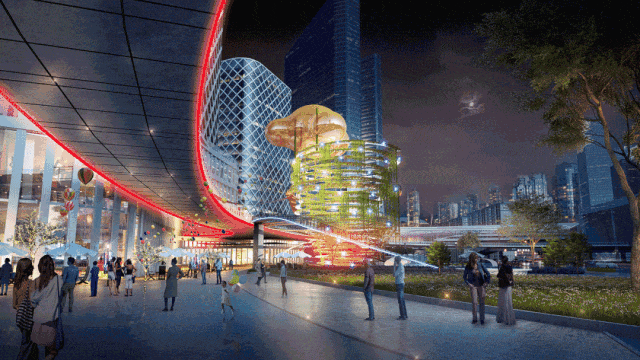 站在街道远处眺望,新世界·广汇尊府的建筑外立面呈现出一种现代简约的风格,采用了板塔结合的设计形式。这种设计不仅有利于提升建筑的抗风性能,更重要的是优化了每一户的通风和采光条件。超高层的建筑形态在视觉上构成了新塘天际线的一部分,其玻璃幕墙与线条的运用,试图在密集的 urban 环境中营造出一种通透感。作为新世界中国地产有限公司开发的项目,其在建筑规划上明显融入了TOD理念,即围绕交通枢纽进行高强度、混合功能的开发。这种规划思路打破了传统住宅区与交通站点割裂的状态,将居住、商业、办公和交通无缝衔接,使得土地利用率最大化,同时也为居民创造了一种“出站即到家”的高效生活方式。