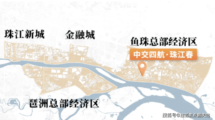 珠江春位于黄埔鱼珠临港经济区,是广州东进战略的核心支撑点。项目北接珠江冷冻厂,西至铁路,东临黄埔海关,南至珠江涌,临近核心滨江地带。鱼珠片区被定位为广州第二CBD的重要组成部分,未来将汇聚金融、科技及文化产业,形成现代服务业高地。