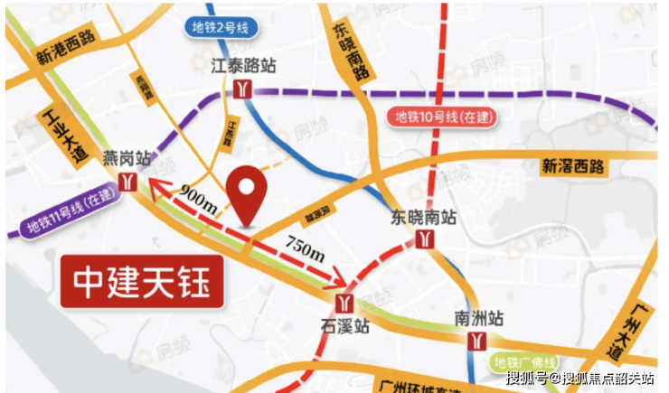 中建天钰位于海珠区新滘西路以北核心地段,地理位置优越,是连接珠江新城、琶洲与广佛经济走廊的重要枢纽地带。项目周边地铁资源丰富,距离11号线燕岗站与石溪站均在一公里范围内,未来可快速直达珠江新城、金融城等地。商业配套方面,项目紧邻东南晓商圈,周边有南泰百货、万科里、燕汇广场等多元化商业设施,满足日常消费需求。教育资源上,小学阶段大概率对口红棉或培红学校,中学教育资源也较为稳定。随着海珠西片区城市更新持续推进,该板块正逐步成为广州新兴的优质居住带之一,占据城市发展红利的核心位置。