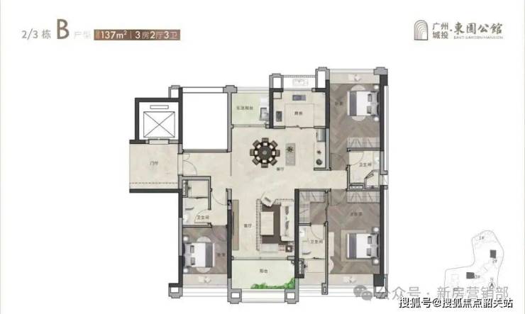 3、【137 ㎡ 3房带双主套】