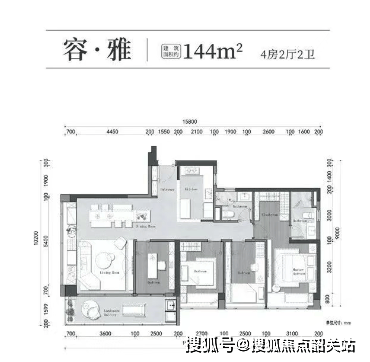 144 平户型:四个卧室均朝南,客厅设有约 5.2 米的飘窗,采光通风俱佳。靠近客厅的书房可灵活改造,若不需要可打掉以扩大客厅空间,满足家庭不同阶段的使用需求。