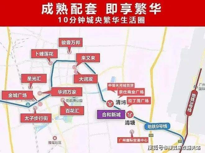 :与地铁 9 号线紧密相连,清塘站和清㘵站近在咫尺,为居民日常通勤和出行提供极大便利。通过地铁网络,可快速到达白云机场、天河等城市重要区域,融入都市繁华生活圈。未来规划中的多条地铁线路交汇于附近的雅瑶站,将进一步提升项目的交通优势。