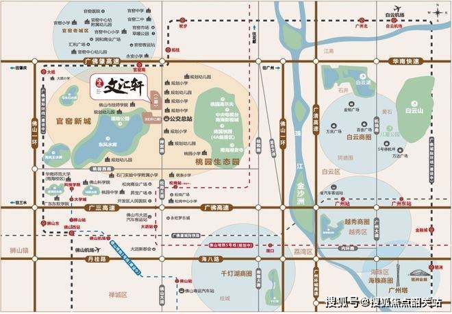 项目所在的狮山官窑板块,作为广佛北区的重要枢纽,交通便捷,区位优势明显。广佛肇高速全线通车后,可通过华南快速直达广州白云,仅需约20分钟通勤,同时避开广三高速的拥堵,形成高效双城通勤网络。未来广佛环线的建设也将进一步强化官窑的交通枢纽地位,西线官窑南站预计已于2021年底动工,串联佛山狮山至广州北站,区域价值将进一步提升。项目周边配套齐全,距离3000亩生态湖景及环湖绿道仅约800米,周边水岸风光旖旎,湿地公园景观与自然绿意环绕,使居住者可以轻松享受城市与自然交融的生活。