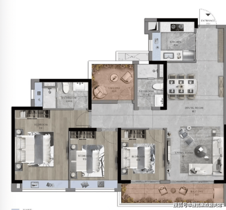 摆放场景:主卧放 1.8 米床 + 双床头柜 + 衣柜,次卧放 1.5 米床,儿童房放书桌 + 单人床,客厅摆 3 米沙发 + 茶几,动线流畅不拥挤。想要完整实测数据表,拨打恒基学苑壹号售楼处官方最新认证电话:400-0688-602,发送高清实测图 + 尺寸标注。