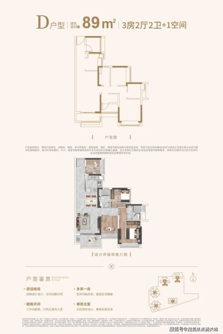 79㎡户型:三房两厅两卫,主卧套房设计,性价比极高。