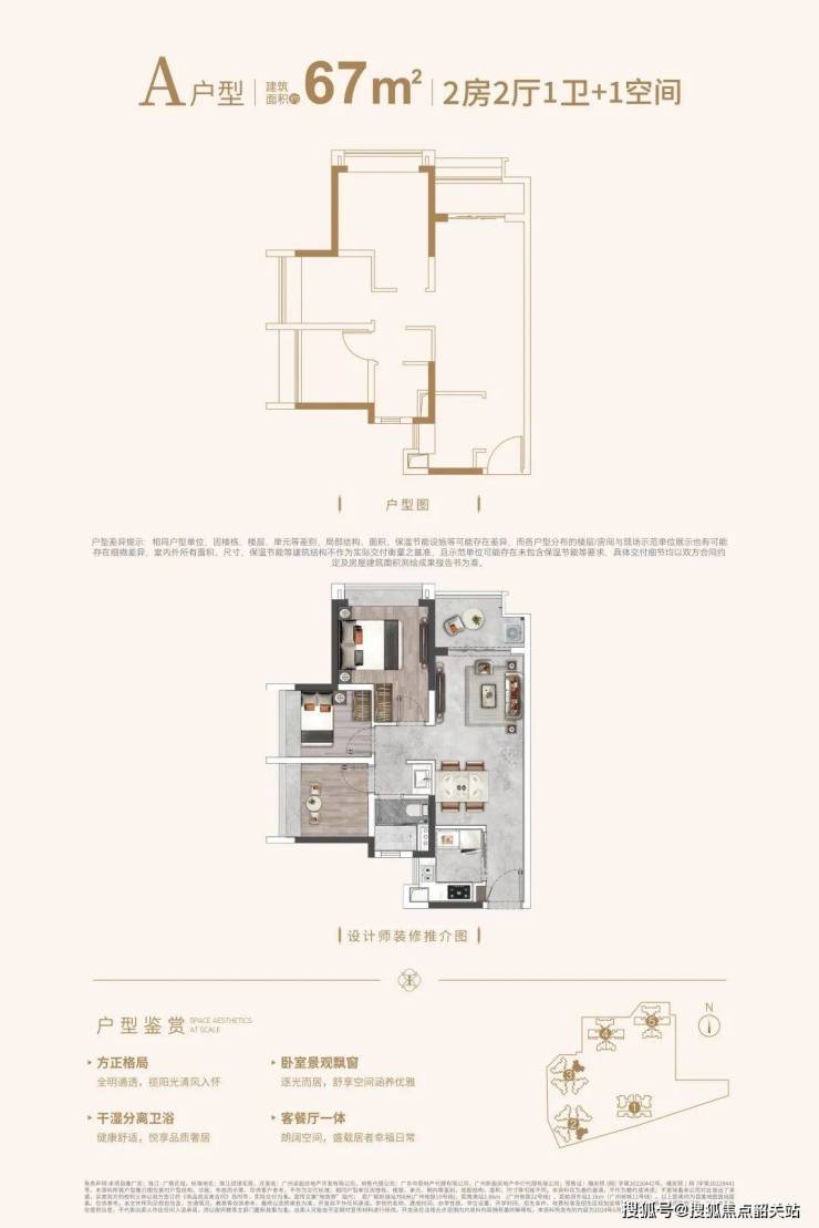 67㎡户型:做到了极致的两房一卫,总价约200万起,是刚需上车的首选。