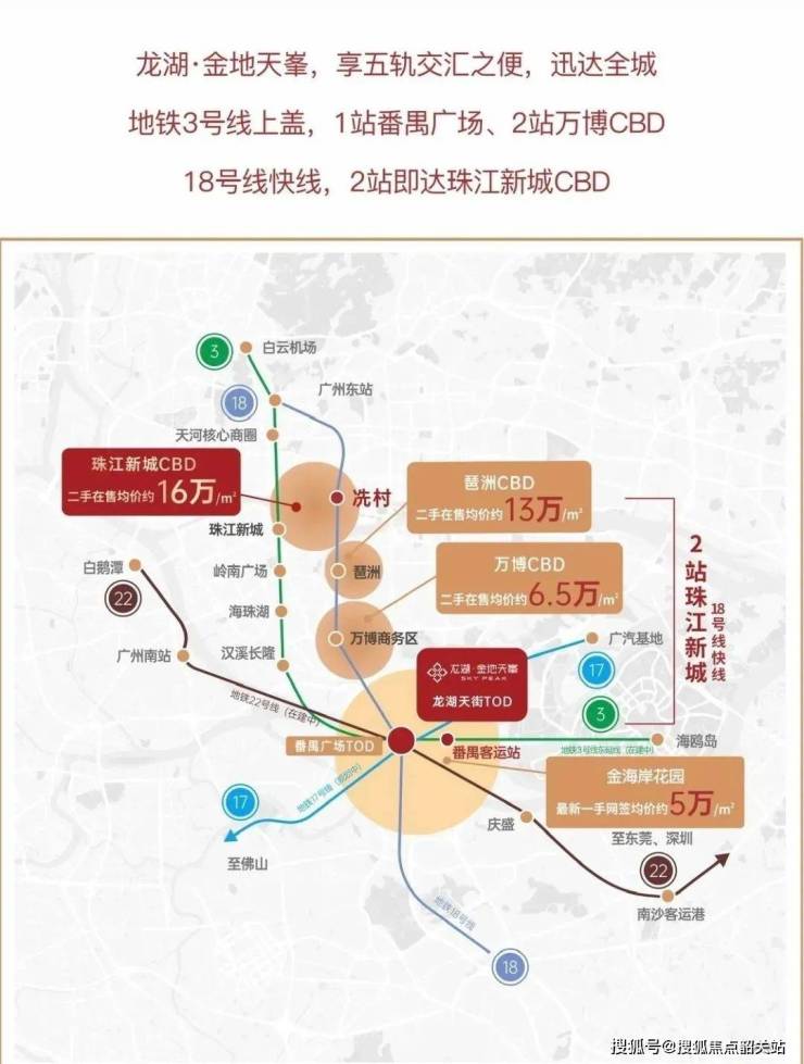 作为广州黄金中轴地理位置,沿着全国最快的地铁18号线打造,横跨珠江新城、琶洲、万博、番禺中芯,再到南沙。