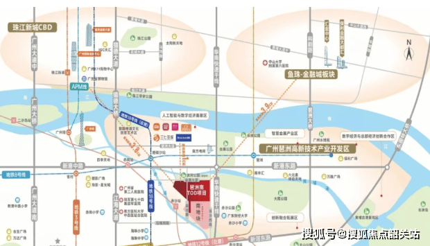 琶洲南TOD坐落于海珠区金运路1号,与琶洲西区仅一涌之隔。北望黄埔涌对岸,电商总部林立;东倚华南快速干线,2公里即达高速入口;南接广交会展馆,每年吸引超2200万全球客商。这里不仅是广州“珠金琶”黄金三角的重要一极,更是未来十年数字经济与人工智能产业的核心引擎。