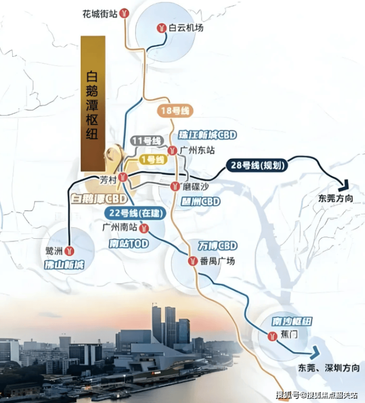 项目距离地铁1号线与11号线交汇的芳村站步行约500米,22号线在建、28号线规划中,未来从小区出发可直达广州南站、珠江新城甚至东莞。自驾也方便,出门就是芳村大道中与花地大道,珠江隧道入口就在附近,早高峰去天河CBD平均车程约25分钟。