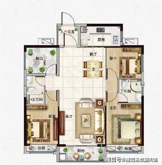 户型设计与空间细节:94㎡三房起步+南北通透+正南朝向+毛坯/精装双选