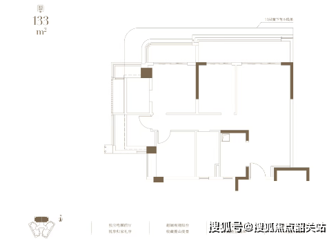 建面133㎡户型:独立电梯前厅,超阔观景阳台,收藏揽山美景。