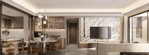 建面143㎡户型:奢阔餐客一体空间,宽界瞰景阳台,尽藏都会绿景。