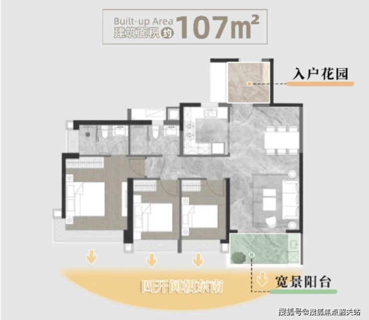 优势三:硬核产品,品质迭代。实测容积率2.5、绿化率32%,超宽楼间距最大可达85米;建面约93-132㎡三至四房精装户型,创新洄游动线、独立家政间设计,12米南向面宽,巨幕玻璃景观视野,迭代现代人居体验。