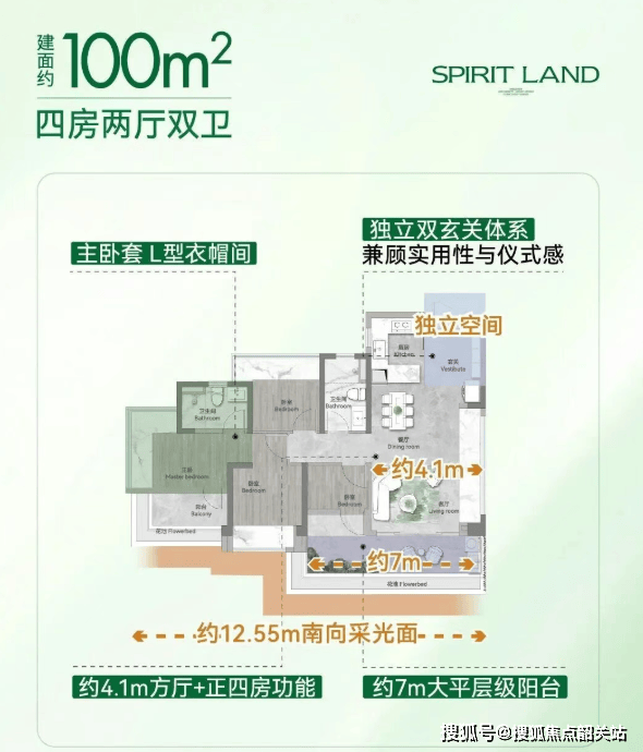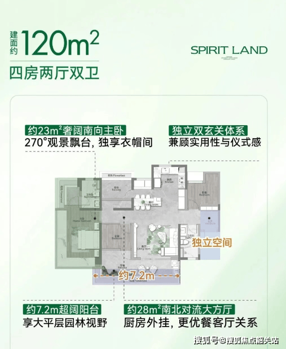 建面约120㎡的四房两厅两卫,主打南北通透的全能大四房。双玄关入户,彰显尊贵;LDKG+X约28㎡的南北对流大方厅,空气流通,采光充足;豪宅同款的中西分厨,让烹饪成为一种享受。约7米的大平层级阳台,约23㎡的奢阔主卧配独立衣帽间,每一个细节都在诉说着生活的品质。