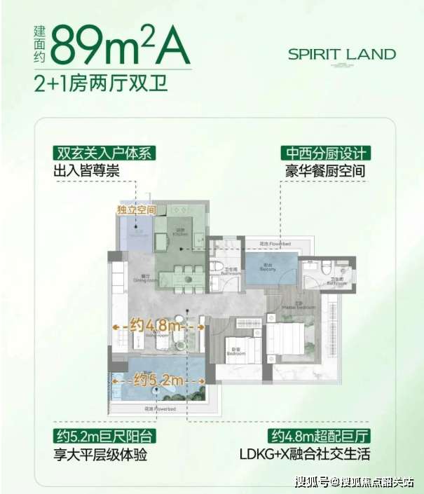 建面约89㎡的三房两厅两卫,被誉为“海珠王炸90户型”。在如此紧凑的面积段内,竟然实现了约115%的使用率和越级的尺度感。内外双玄关的设计,赋予了小户型大宅的仪式感;LDKG+X一体化的约4.8米越级巨厅,让家庭聚会不再局促;中西分厨的豪宅化设计理念,满足了现代家庭对烹饪的多样化需求。更令人惊叹的是,约28㎡的成长型大主套,灵动可变,配合270°全景飘窗,让无限广角的美景尽收眼底。这是海珠市场上极少见的“小面积、大享受”典范。