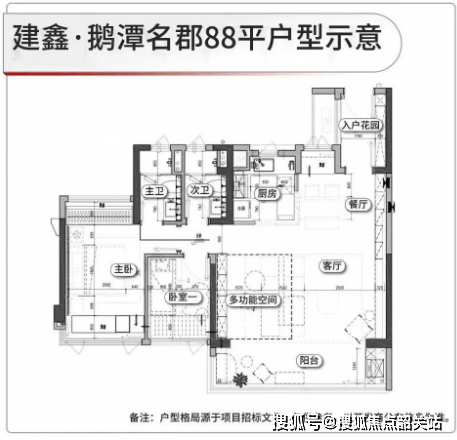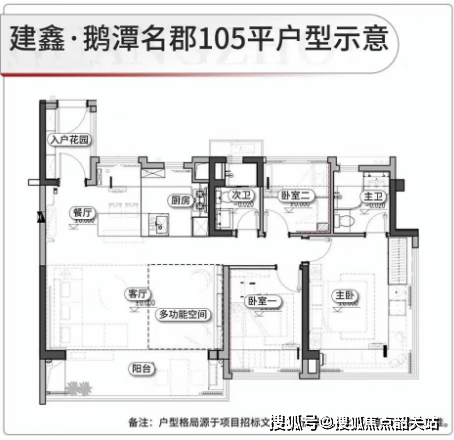 【建鑫鹅潭名郡】提供多种户型选择,面积从88平方米到125平方米不等,所有户型均采用全南向布局,注重采光和空间利用率。阳台尺寸较大,例如88平方米户型的阳台开间约为6.2米,105平方米户型约为6.5米,而125平方米户型更是达到了8.3米。每个户型都配备了入户花园,各个卧室也拥有超大飘窗,极大地提高了居住舒适度。新规设计使得使用率较高,适合不同家庭结构的需求。