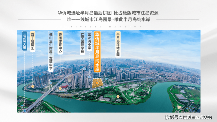 半月岛周边教育、商业、医疗及生态资源完善,形成一站式生活圈。教育方面,片区内聚集三龙湾小学、佛山三中附属三龙湾中学、佛山霍利斯外籍子女学校、华英中学及佛山实验学校等优质学府,实现从小学到高中全龄段教育覆盖。商业方面,紧邻成熟商圈,日常生活和休闲购物便利。医疗配套完善,保障家人健康。生态资源上,项目紧邻约400亩半月岛湿地公园及东平河滨水景观,形成城市中心难得的绿色水岸生活环境。