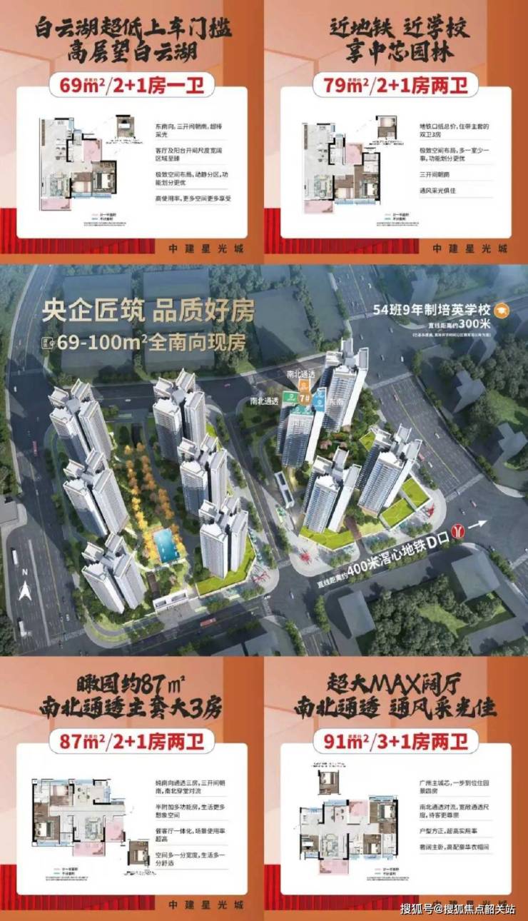 【中建星光城】位于广州市白云区,坐落在白云湖西湖板块,是一个集居住、商业和教育于一体的综合性住宅项目。该项目由世界500强企业中国建筑集团中建三局开发,以其低门槛高性价比的定位吸引了众多购房者的关注。