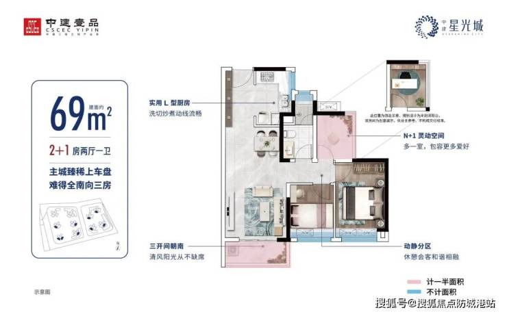项目全南向布局10栋21-25层低密园林美宅,建面约69-100㎡南向三四房,百变灵动空间,主城区极致户型。