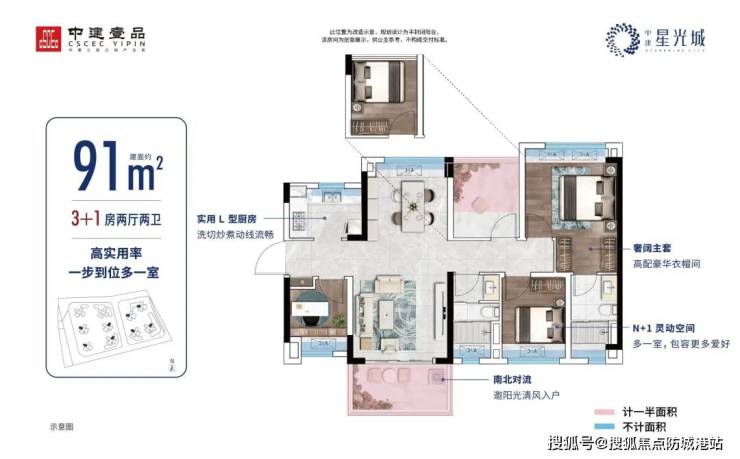 建面约91㎡ 南北通透4房,广州主城芯,一步到位住园景四房,南北通透对流,宽敞通透尺度,待客更尊崇,户型方正,实用率高达约96%,给生活更多空间想象