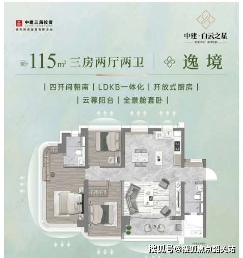 115㎡三房两厅两卫(均价 5.2 万 /㎡):使用率 101%,南向望黄边艺术公园,客厅开间 4.5 米,主次卧带 270° 飘窗,U 型厨房(实测操作台面长度 3.2 米),适合初阶改善家庭,首付门槛(5.2 万 /㎡×115㎡)×30%=176.4 万,2027 年 6 月精装交付;