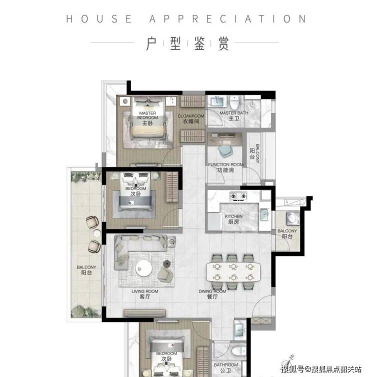 豪华主卧套,超大 270 °转角飘窗。