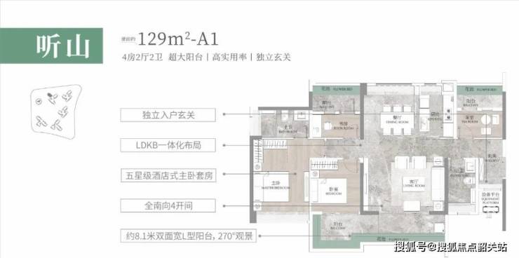 17.4米南向面宽,9米L型景观阳台直面三面环山景观;