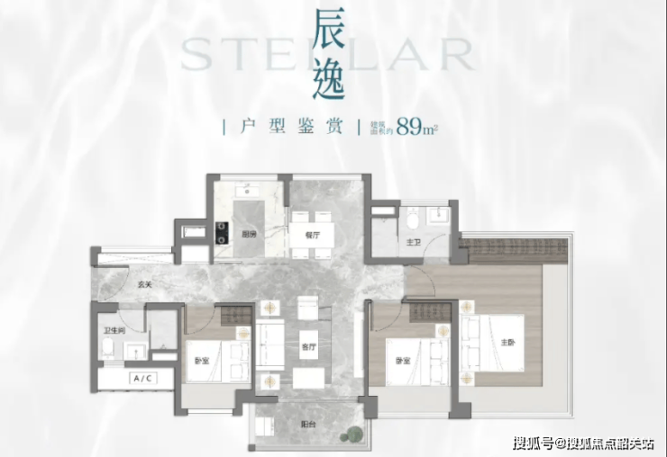 89㎡三房两卫:采用LDK一体化设计,客厅、餐厅、厨房相连,空间通透,阳台进深超1.8米,可打造休闲、晾晒等多元功能,功能分区清晰,居住舒适度较高,适合刚改家庭;