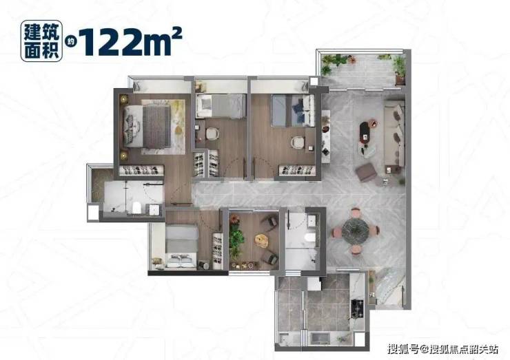 住宅产品规划为100-170㎡奢景尊邸,户型设计以“空间成长性”为核心,打破传统户型的功能局限。例如,创新设计“空中花园”空间,可根据家庭需求灵活改造为书房、茶室或儿童活动区,满足不同生命周期的居住需求。户型整体遵循“方正通透”原则,南北对流设计确保空气自然流通,多开间朝南布局最大化引入自然光,部分户型更实现270°观景视野,将白云山景与社区园景尽收眼底。