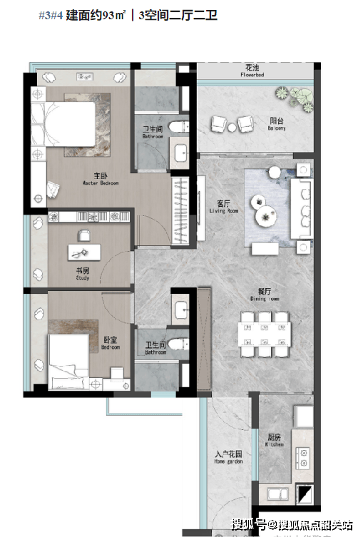 3栋、4栋:主推93㎡三房、105㎡四房、142㎡四房,均价5.8万元/㎡;