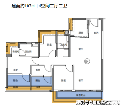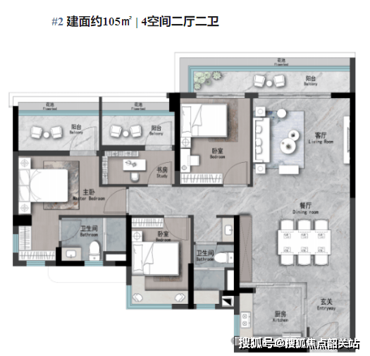 105㎡四房:天河稀有户型,6.2米巨幕阳台,媲美市场120㎡+配置,满足多孩家庭需求;