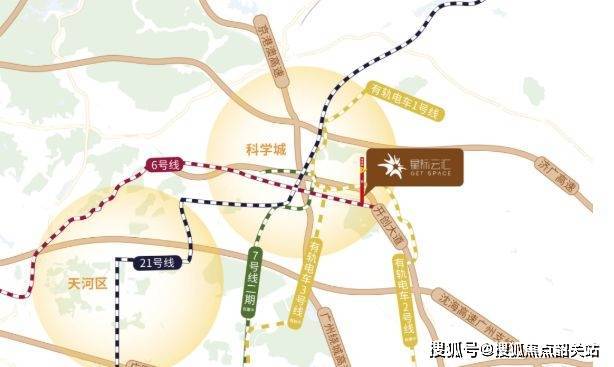 卓越的地理位置:星际云汇位于广州市黄埔区开创大道与荔红二路交叉处,为广州地铁 6 号线香雪站上盖物业。项目雄踞黄埔科学城芯,作为广深科技创新走廊动脉节点,科学城未来规划建设为工业总产值 “万亿” 强区,致力于打造极具国际影响力的中国智造中心,区域发展潜力巨大。