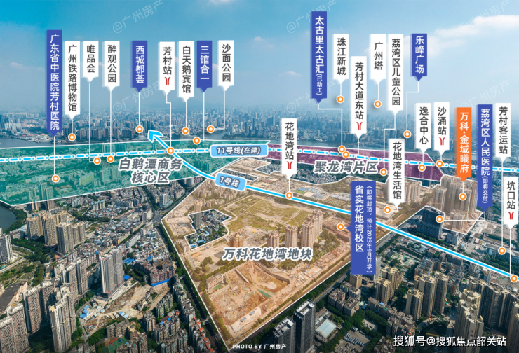板块有较优质的学位配套,3条地铁线路覆盖。此外,还有千亿级别的医疗产业集群,城中绝版的滨江资源,花地湾西南片区的规划升级。