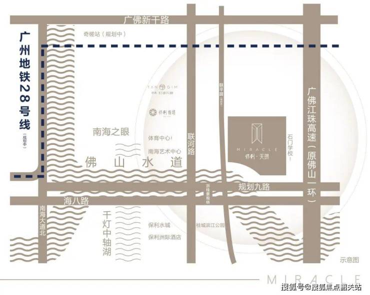 项目距离地铁广州28号线(规划)站点约1公里,未来通勤效率值得期待。虽然目前这条线路还在建设阶段,但它的走向已经足够清晰——串联佛山、广州、东莞、惠州四大万亿GDP城市,从这里出发,两站到白鹅潭、七站抵琶洲。日常出行也不用等地铁,海八路、桂澜路、广佛江珠高速(佛山一环)三大主干道就在周边,早高峰打车到千灯湖核心区大约15分钟,去广州南站也不过30多分钟车程。更特别的是,规划中的沥桂景观桥将直接连接灯湖南北片区,以后散步过桥就能到对岸的商业和文化区,生活半径被悄悄拉大了。