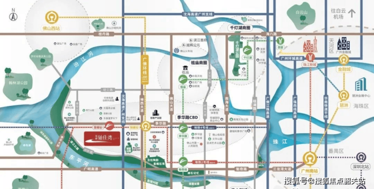 项目地处季华路黄金主轴核心区域,周边交通便利。依托广佛地铁二号线智慧新城站约五百米的距离,实现快速直达广州南站,并可无缝衔接广佛双城生活。规划中的广佛地铁四号线在莲塘站交汇,未来可便捷接驳广州地铁二、三、七、十八号线,形成多线路交通网络,出行选择灵活。