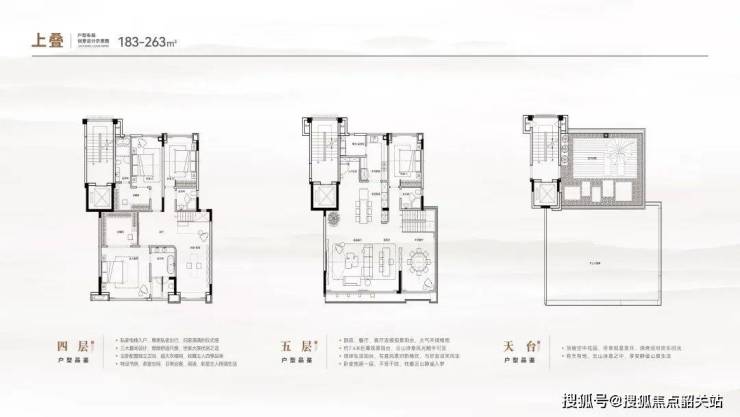 观善居(住宅)为180㎡大平层、180㎡-400㎡上下叠院;